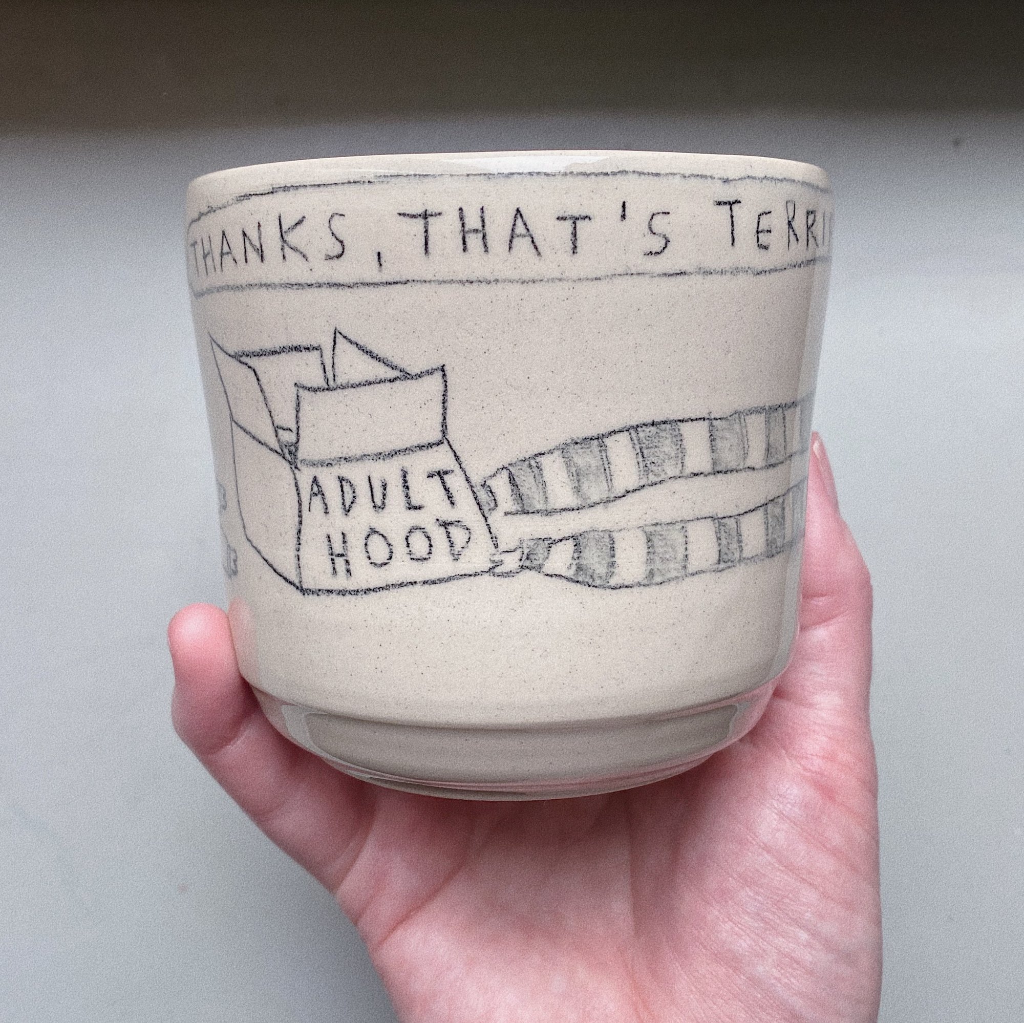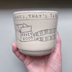 The horridest box one-in-a-kind glazed stoneware cup. No handle. Food & dishwasher safe ceramic.