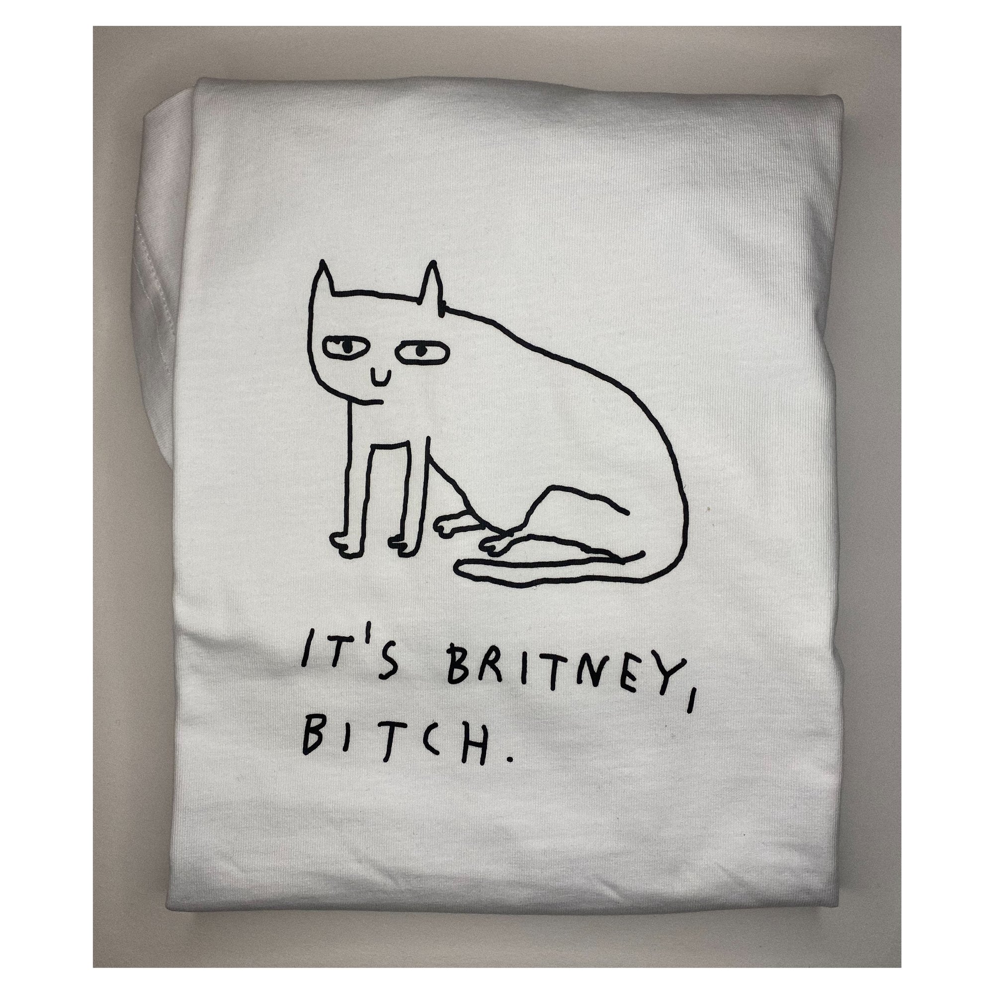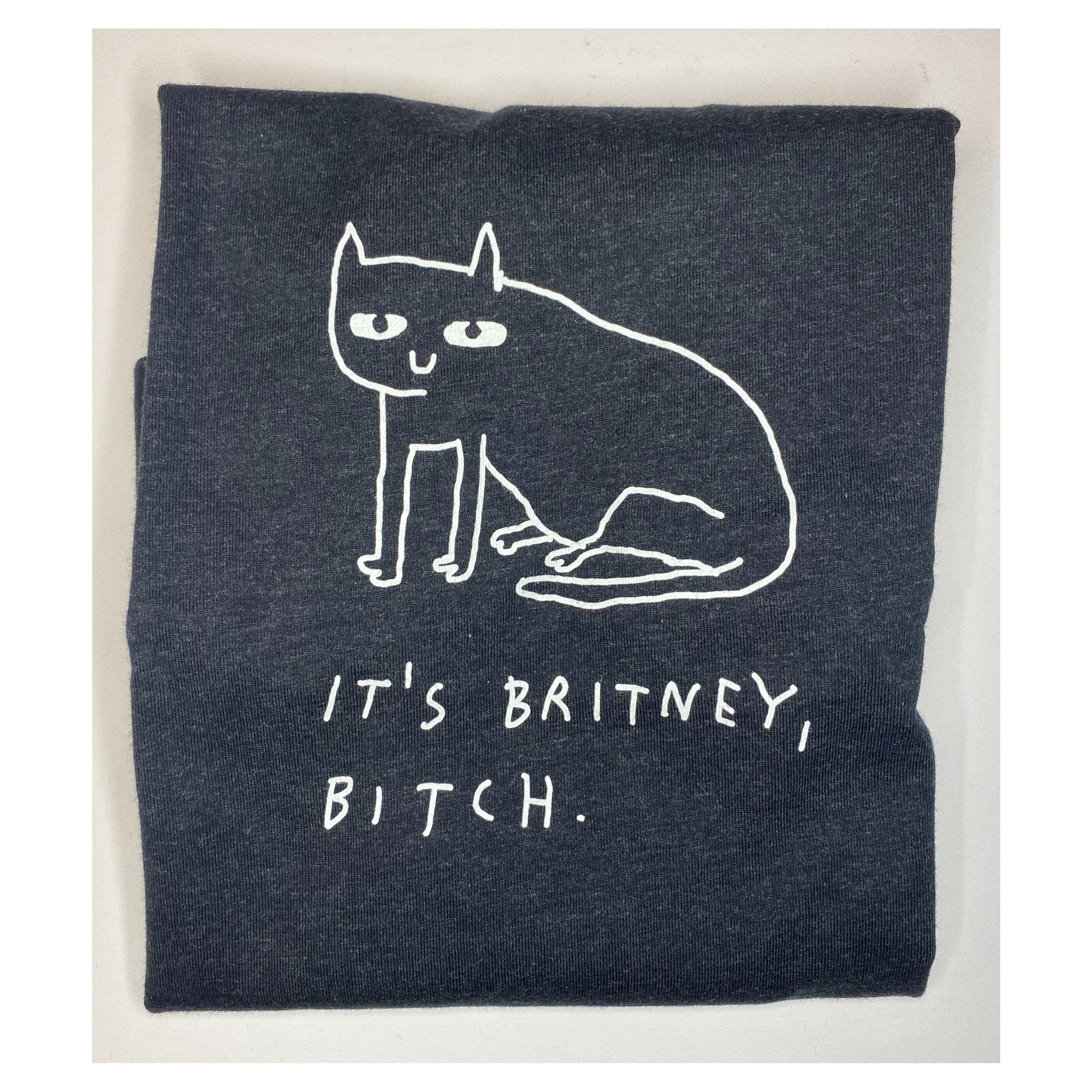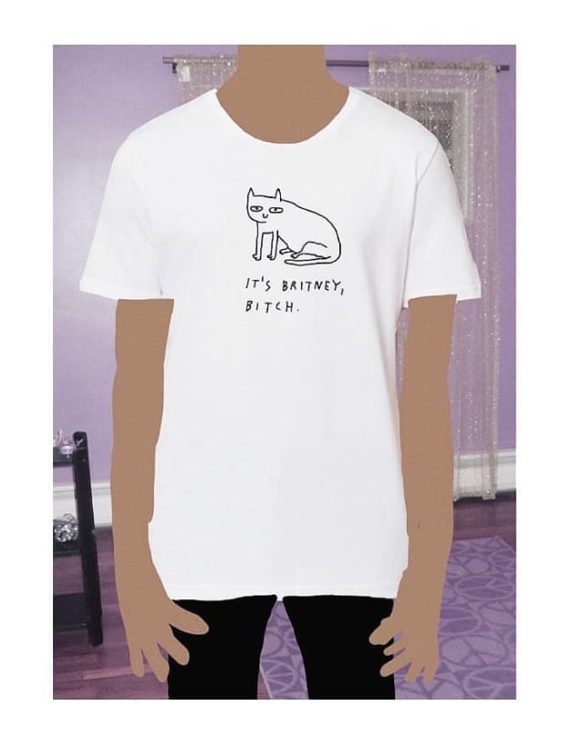 We found six last Britney shirts in two versions in a box: Heather black shirt with white print and white shirt with black print!