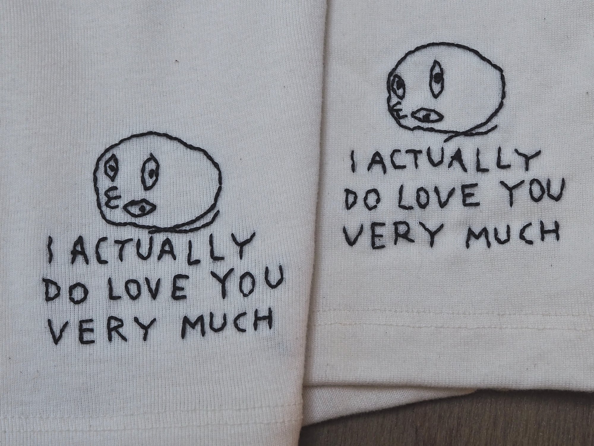 100% organic unbleached cotton. Colour: warm white. Embroidered with black yarn. The embroidery is underlaid with a thin polyester fabric to add stability.